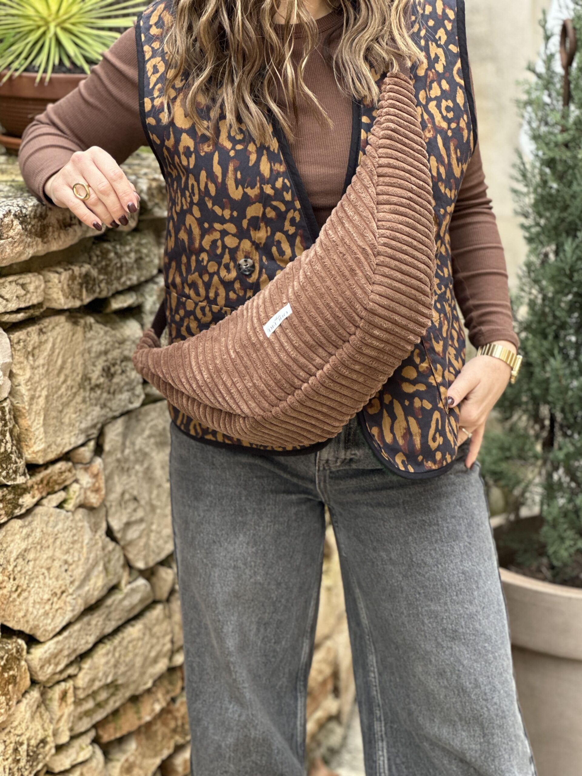 Gros sac banane uni – Velours côtelé bleu marron (côtes XL)