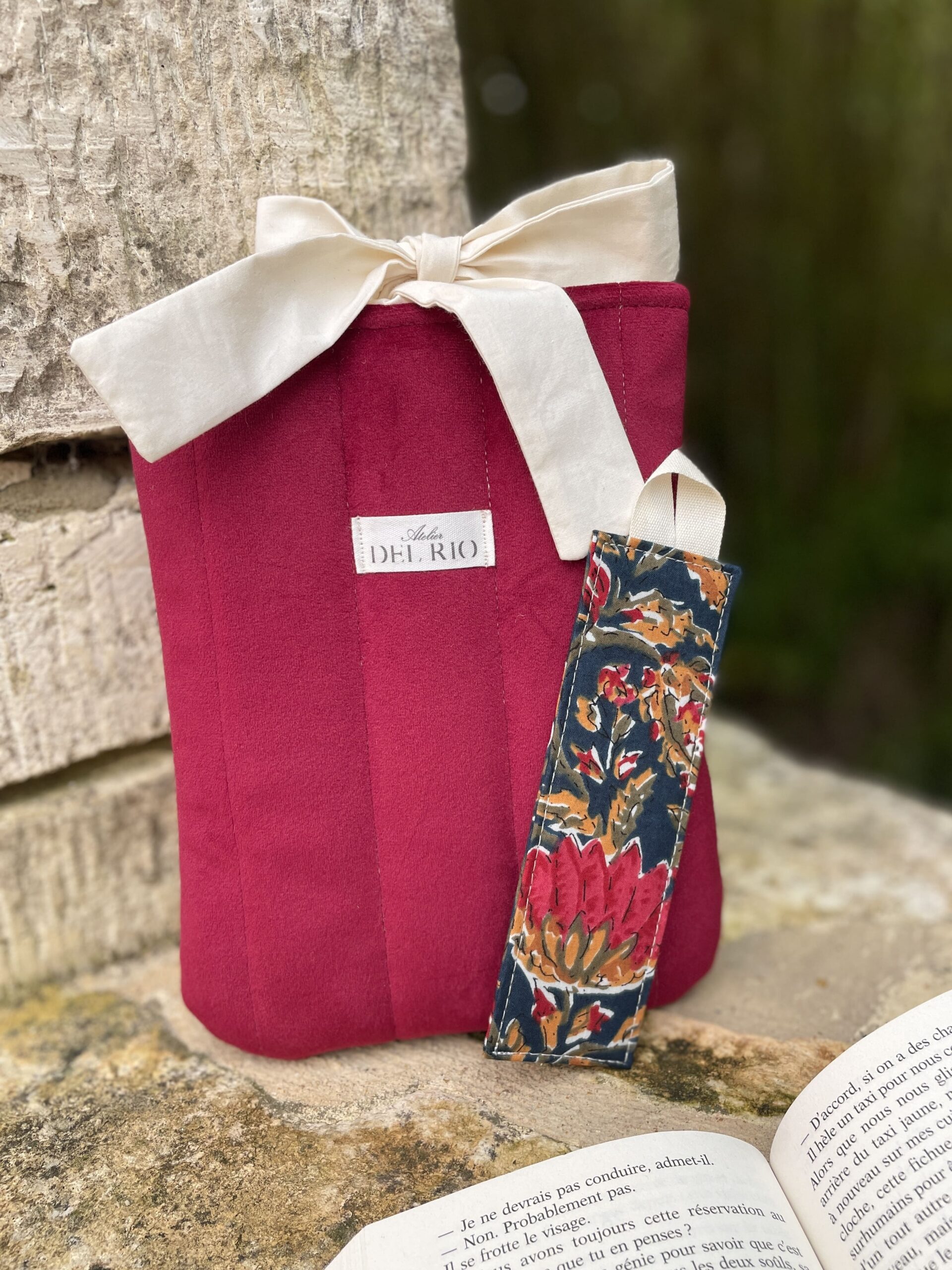 Pochette pour livre – Velours lisse rouge bordeaux