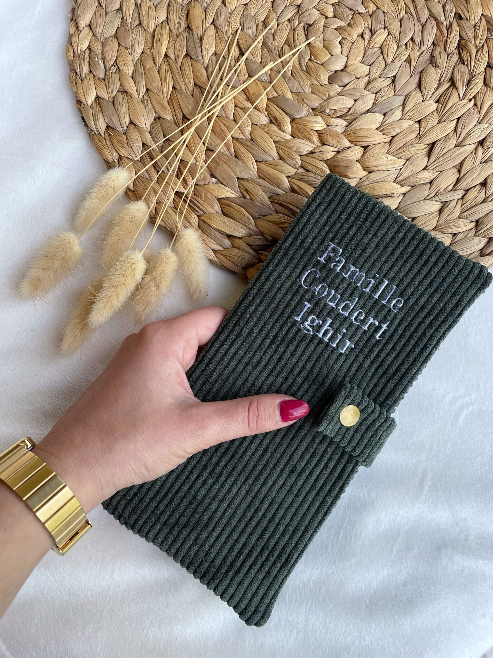 – Le nom de famille à broder : Celui-ci sera brodé en haut du protège carnet de santé
