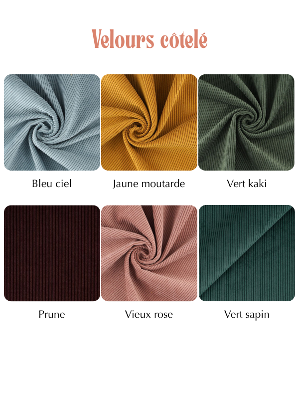 • OU Velours côtelé au choix certifié Oeko-tex : 94% Polyester, 6% Polyamide