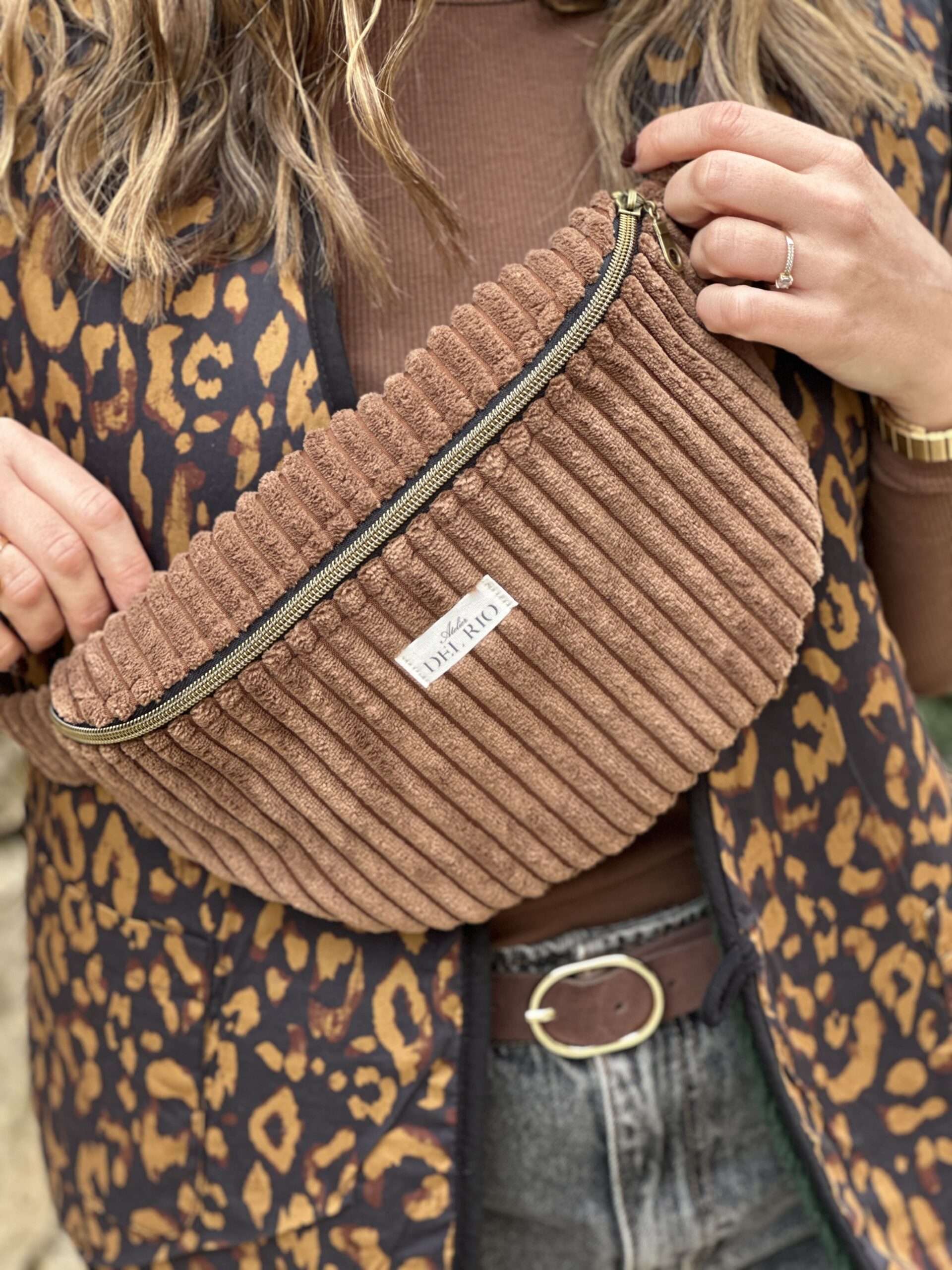 Sac banane uni – Velours côtelé marron (Côtes XL)