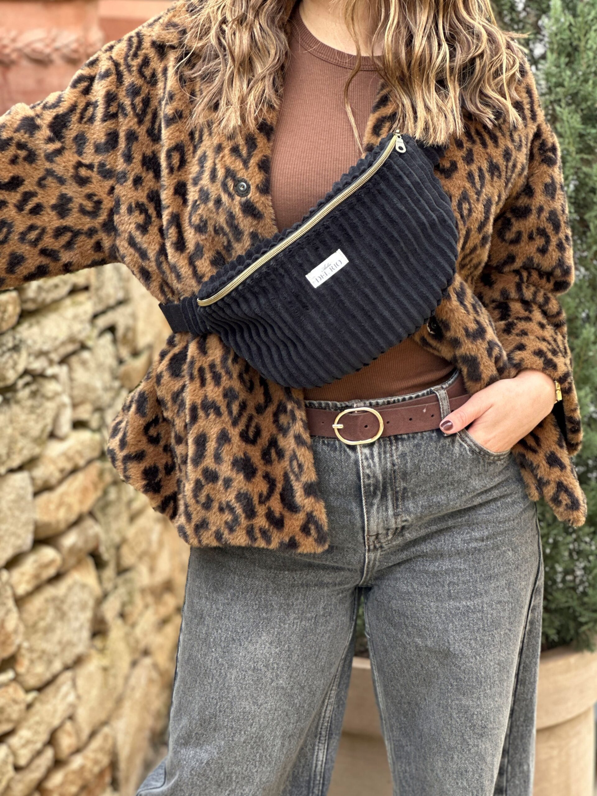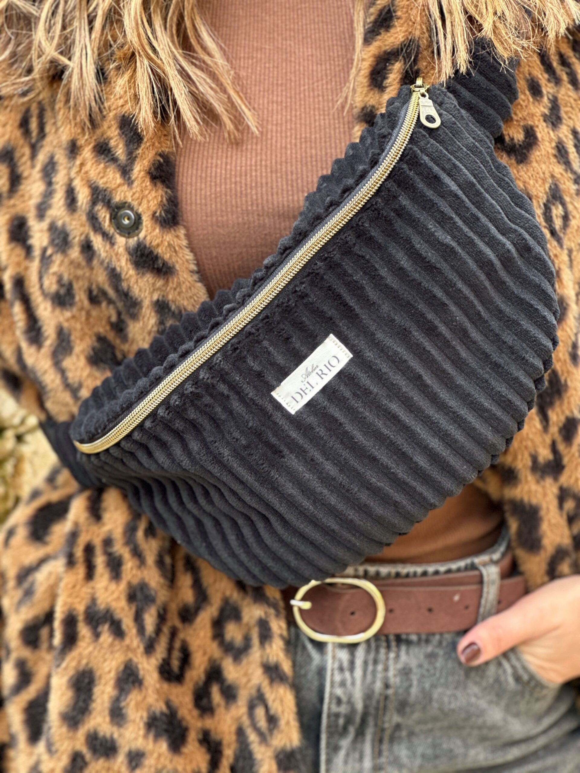 Sac banane uni – Velours côtelé noir (Côtes XL)