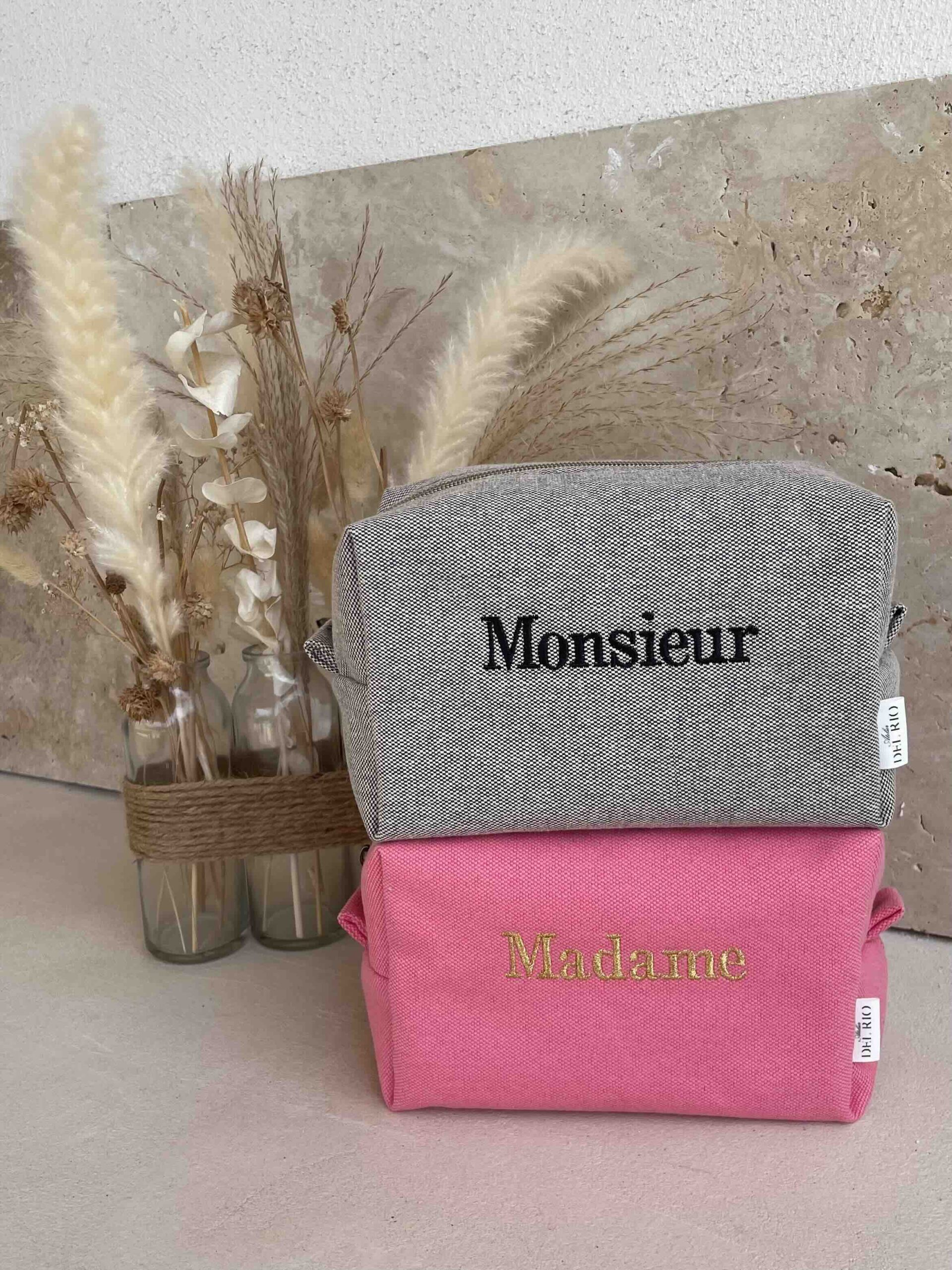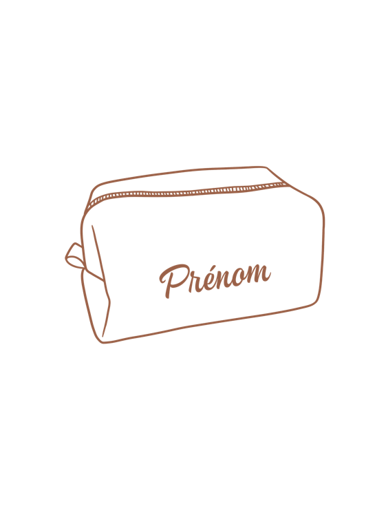 – Le prénom à broder : Celui-ci sera brodé au centre de la trousse de toilette