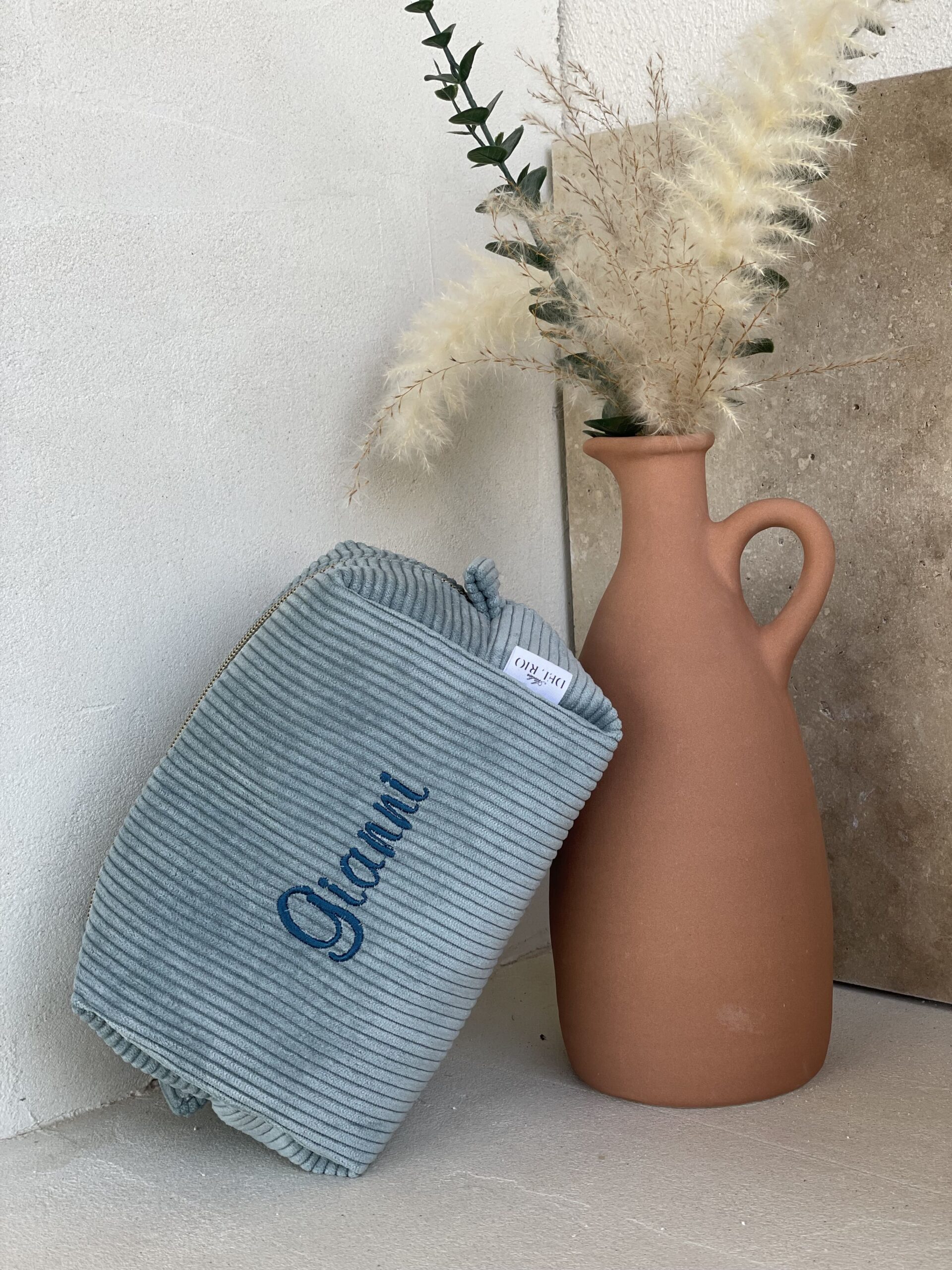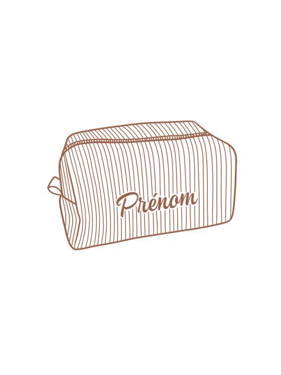 – Le prénom à broder : Celui-ci sera brodé au centre de la trousse de toilette