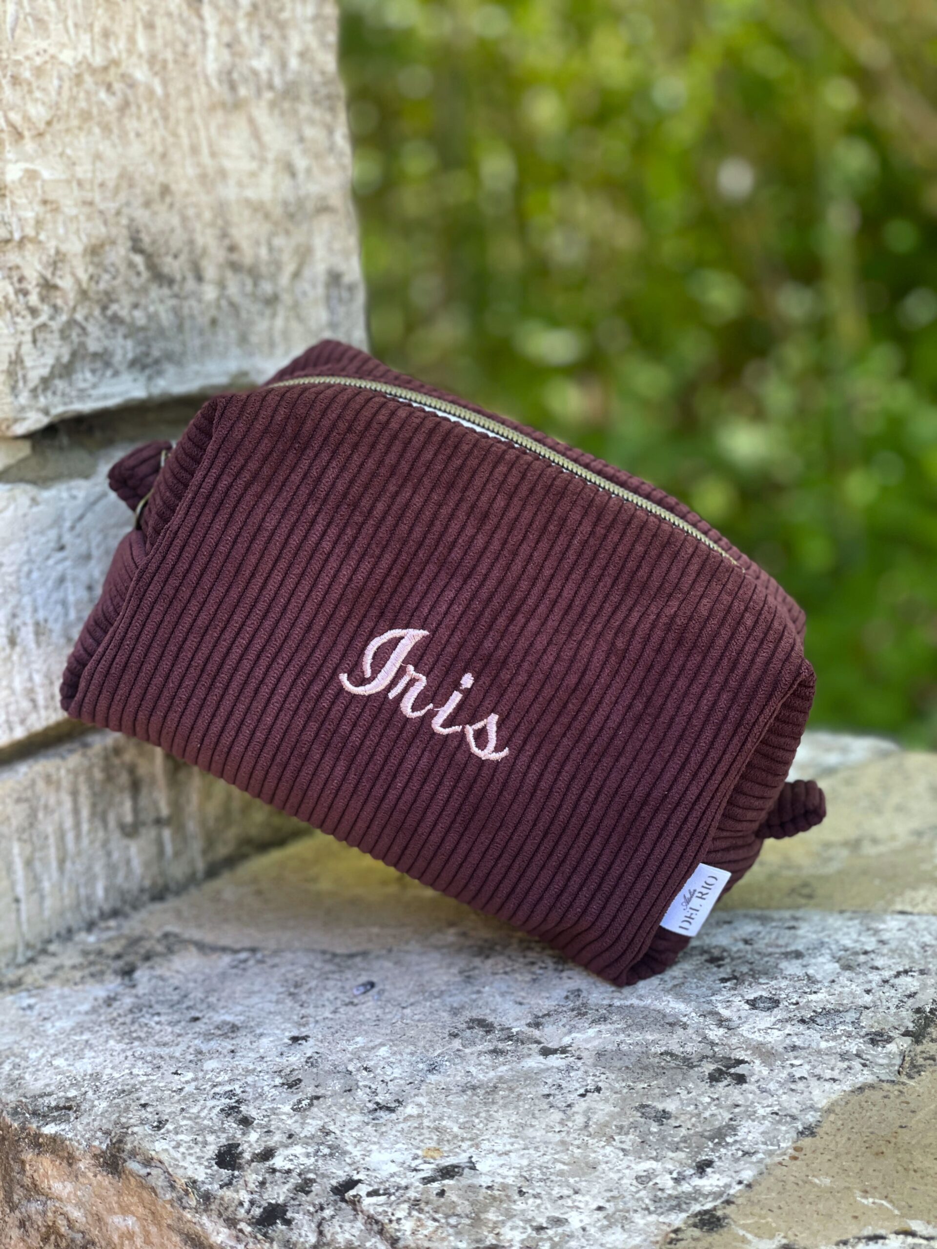 Cette jolie trousse de toilette en velours côtelé est conçue pour vous accompagner de partout avec style et praticité.